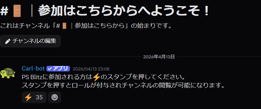②チャンネルにリアクションを押すとロールが付き大会用チャンネルが見えるようになります